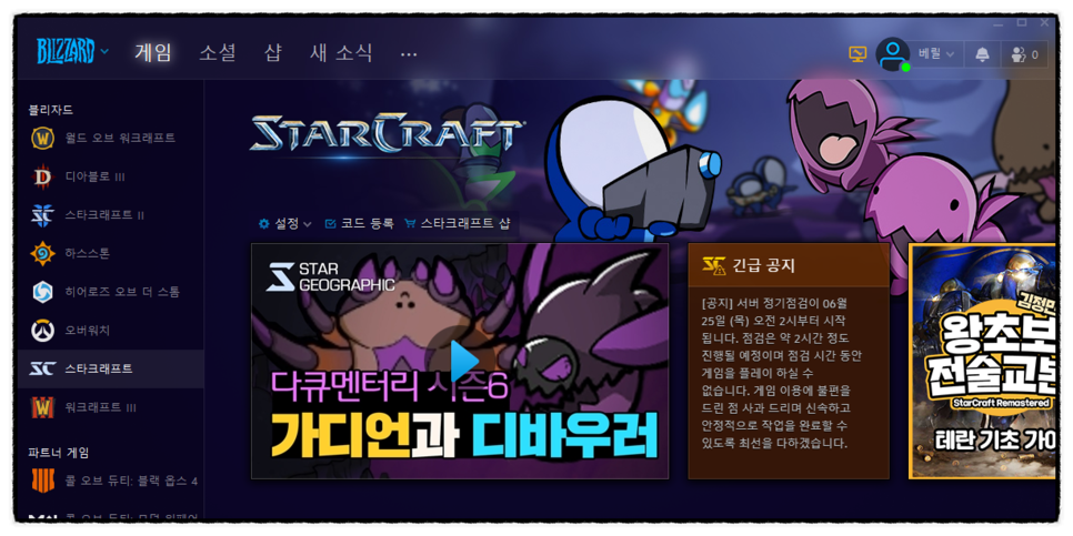 일단 블리자드 앱을 실행시켜주세요.