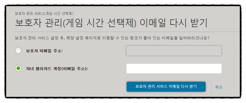 그 다음 자녀 블리자드 계정 이메일 주소를 클릭하고