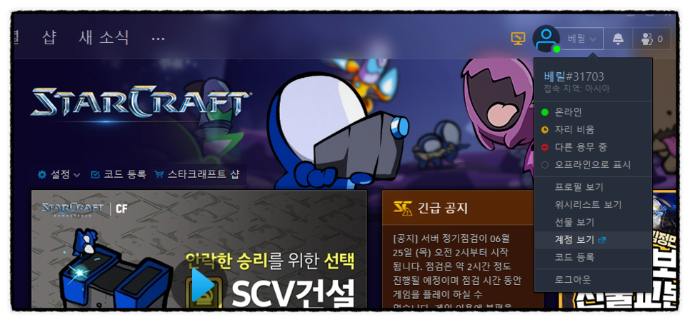 그러면 블리자드 홈페이지로 이동할거에요!