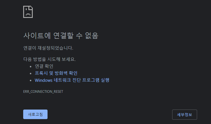 "사이트에 연결할 수 없음"을...