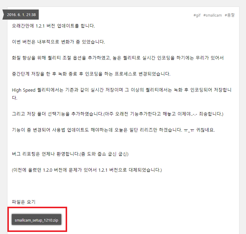 제작자님 블로그로 이동하셔서 스몰캠을...