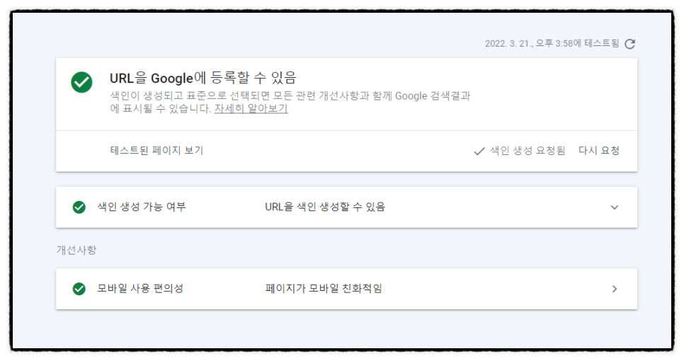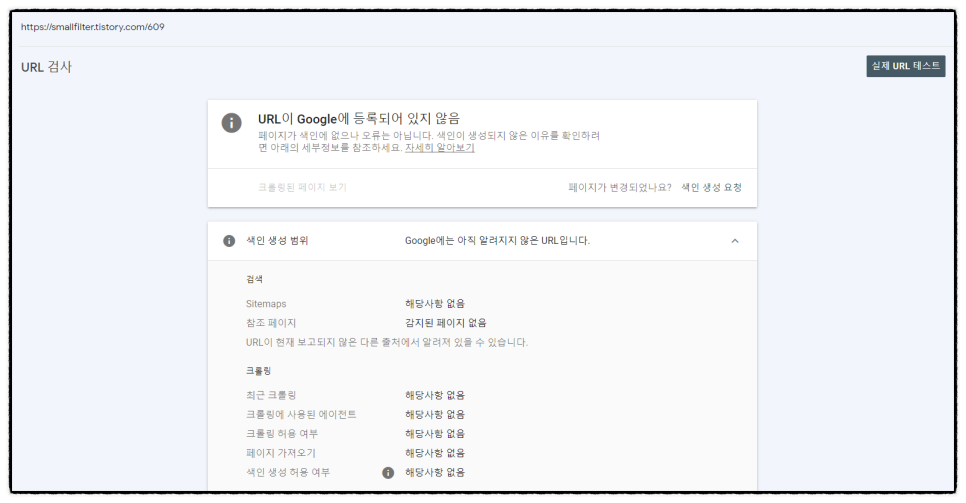구글 서치 콘솔에서 "URL 검사"를 누르고...