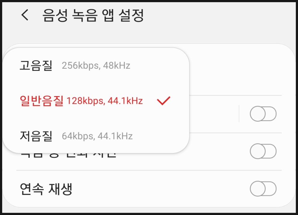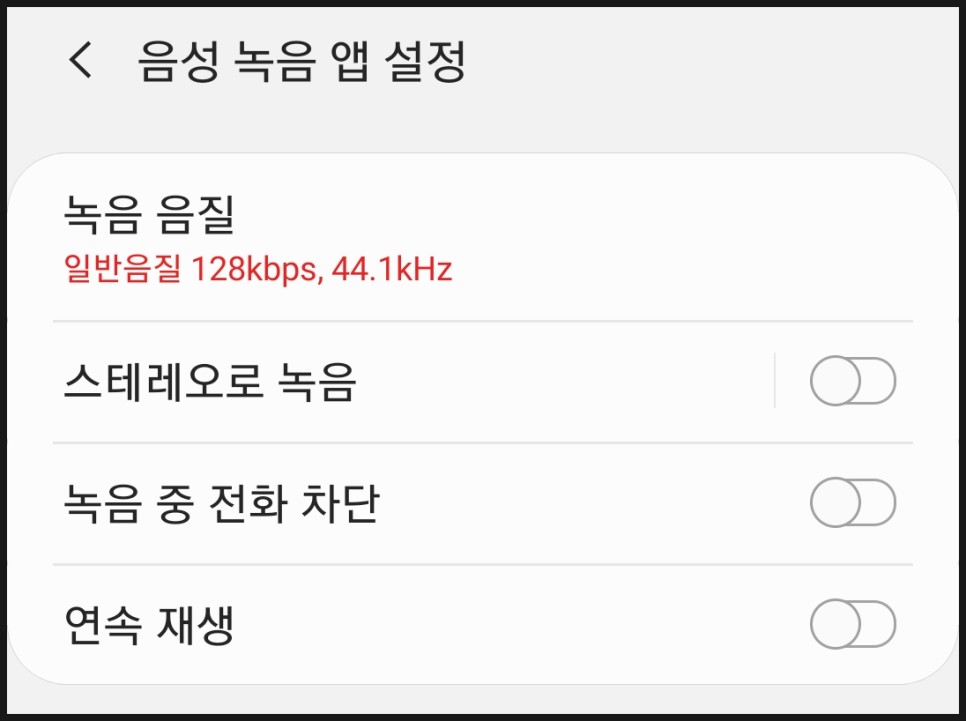 음성 녹음 앱 설정에서 조절이 가능하구요~