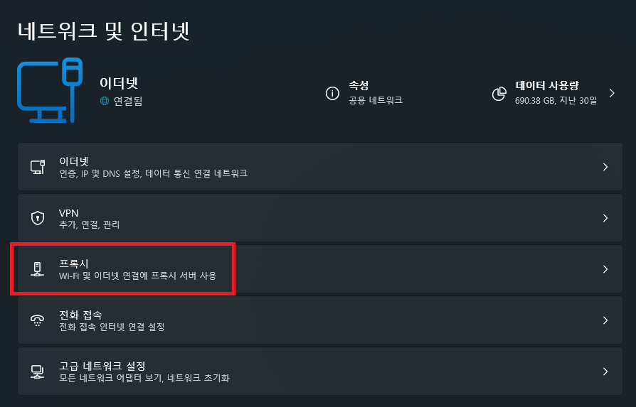 "프록시"를 클릭해주세요~