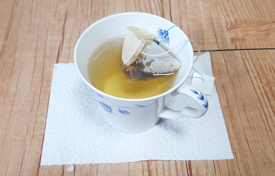 티백을 하나 까서...