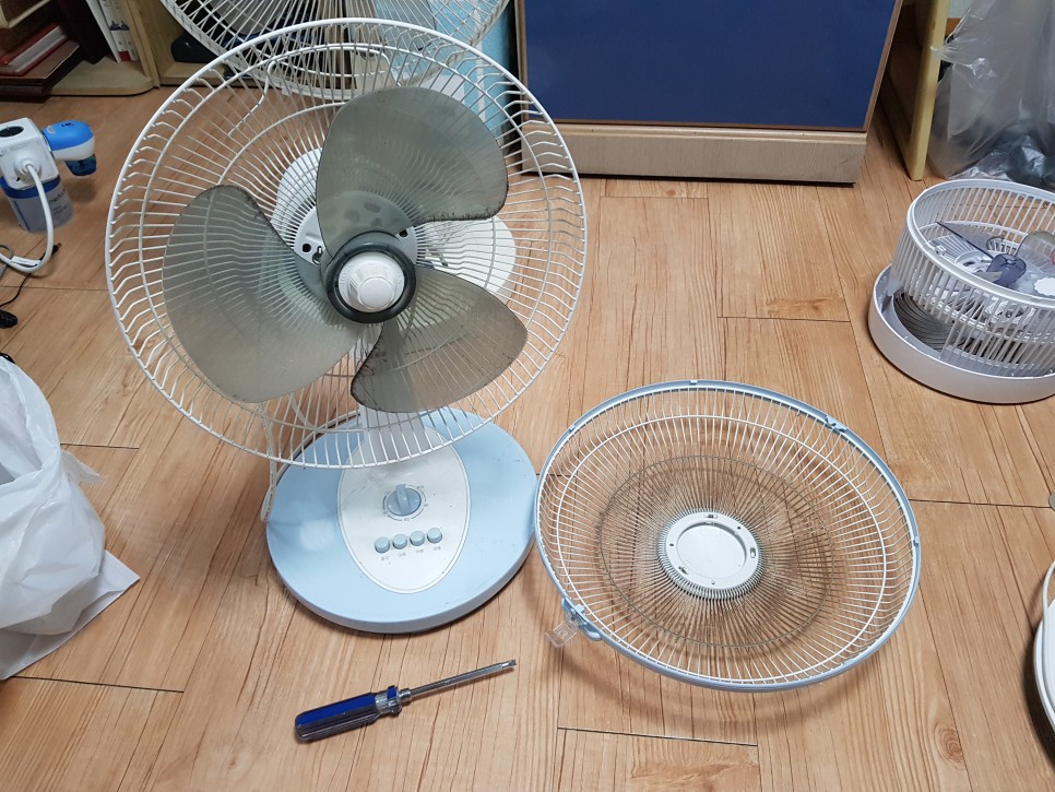 이제 선풍기 해체 작업으로...