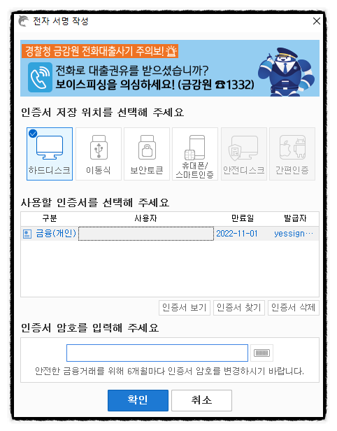 씨크리카드 없을 시 공동인증서 발급 불가!