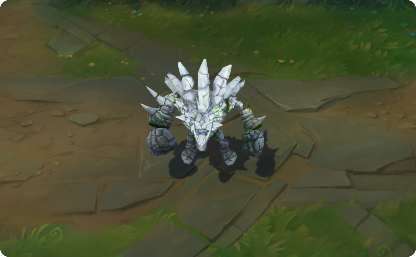 말파이트는 여러 겹의 돌로 감싸여 있어 자신의 최대 체력 10%만큼의 피해를 흡수할 수 있습니다. 말파이트가 몇 초 동안 공격 받지 않으면 보호막이 재생성됩니다.