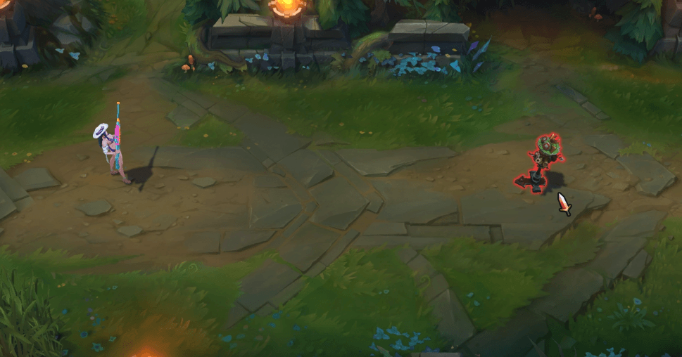 케이틀린이 무거운 그물을 발사하여 적을 느리게 합니다. 그 반동으로 케이틀린은 뒤로 밀려납니다.