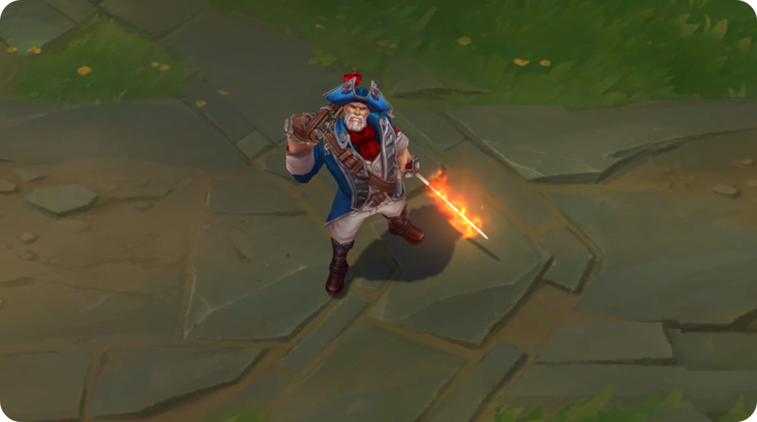 몇 초에 한 번씩 갱플랭크의 근접 공격이 적에게 불을 붙입니다.