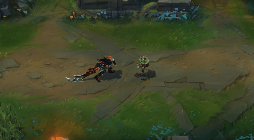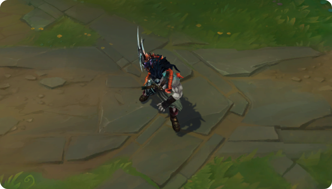트린다미어가 모욕적인 외침으로 주변 챔피언들의 공격력을 낮춥니다. 트린다미어에게서 등을 돌린 챔피언들은 이동 속도 역시 느려집니다.