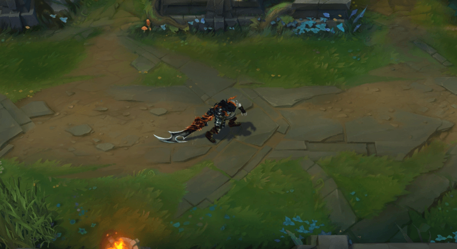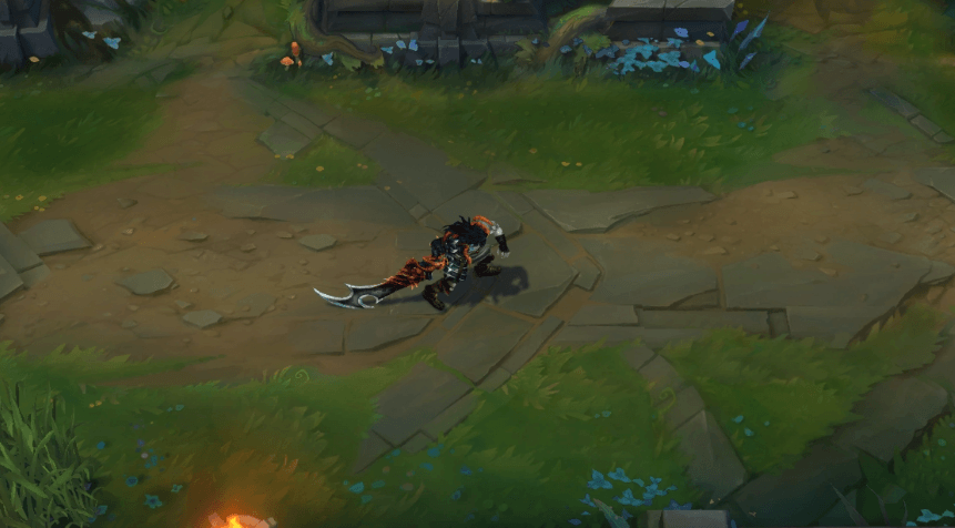 트린다미어가 공격 경로에 있는 적 유닛을 칼로 베어 피해를 입힙니다.