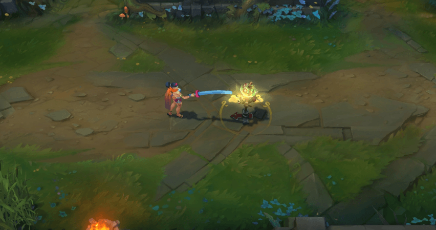피오라가 챔피언의 급소 하나를 드러냅니다. 급소를 가격하면 체력을 회복하고 이동 속도가 상승합니다.