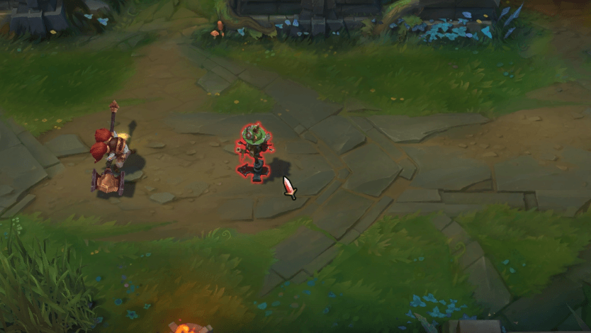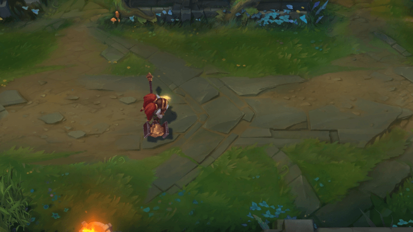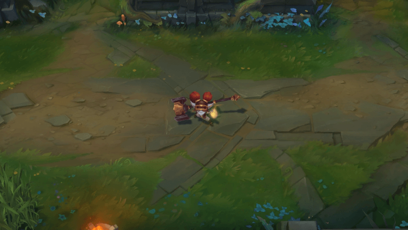 뽀삐가 돌진해 대상을 밀어냅니다. 대상이 지형에 부딪힐 경우 기절합니다.