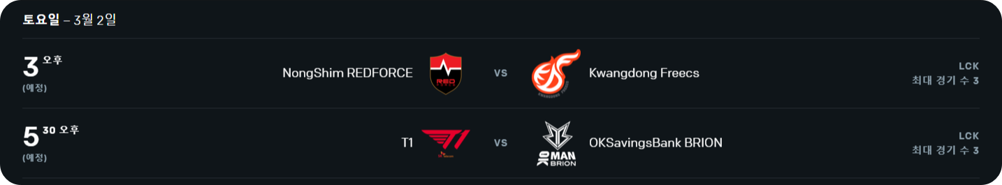 - 방송: 아프리카, 유튜브, 롤이스포츠
