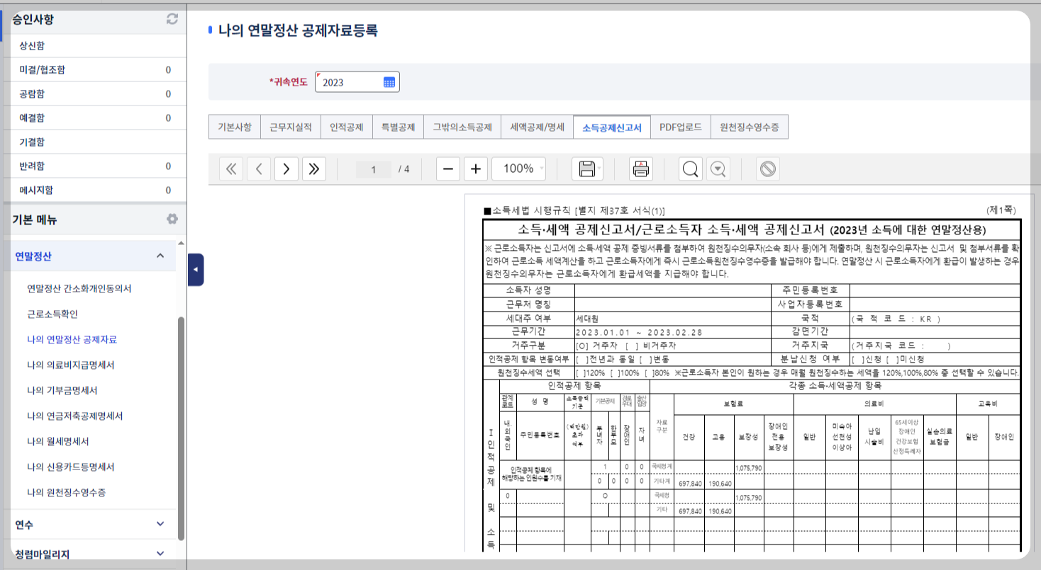 연말정산 간소화 PDF / 소득공제신고서 (+싸인하기) / 주민등록등본