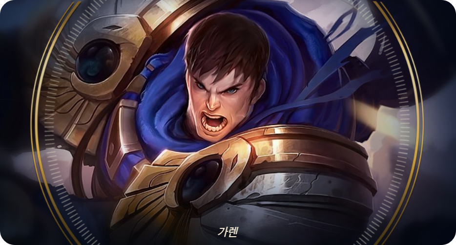 - 스토리: 가렌은 불굴의 선봉대를 이끄는 고결하고 자긍심 강한 전사다. 선봉대 내에서 인망이 두터울 뿐 아니라 심지어 적에게도 존경을 받지만, 그가 대대로 데마시아와 데마시아의 이상을 수호하는 임무를 맡은 크라운가드 가문의 자손이기 때문이 아니다. 가렌은 마법 저항력을 갖춘 방어구와 거대한 대검으로 무장하고, 언제라도 마법사에 맞서 정당한 검으로 진정한 칼바람을 일으킬 준비가 되어 있다.