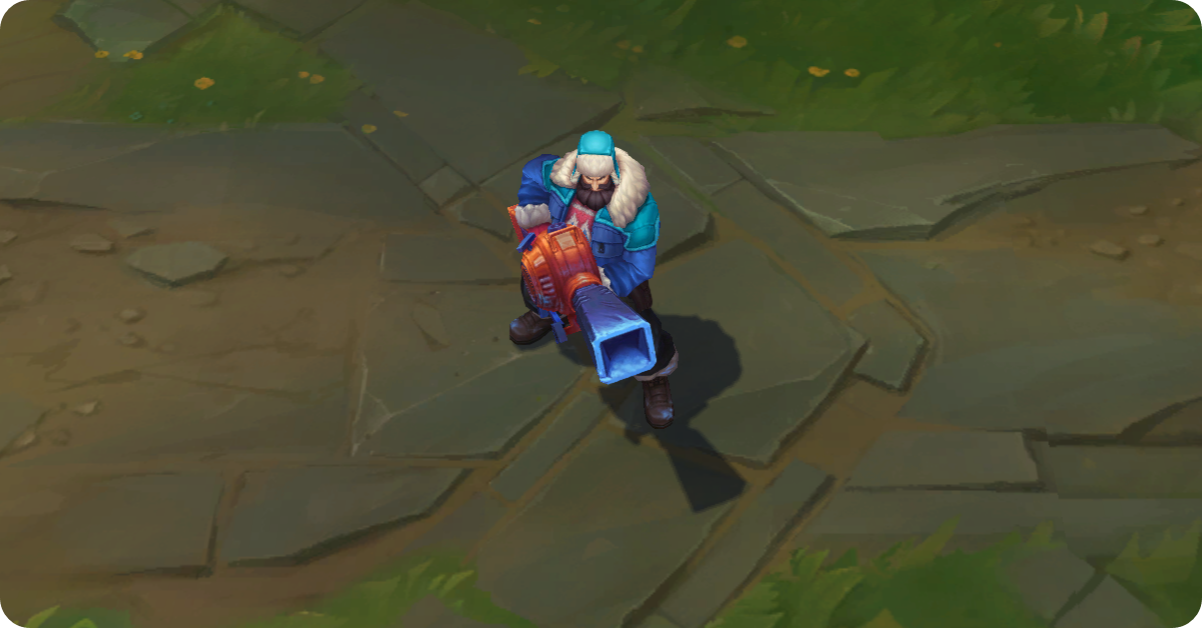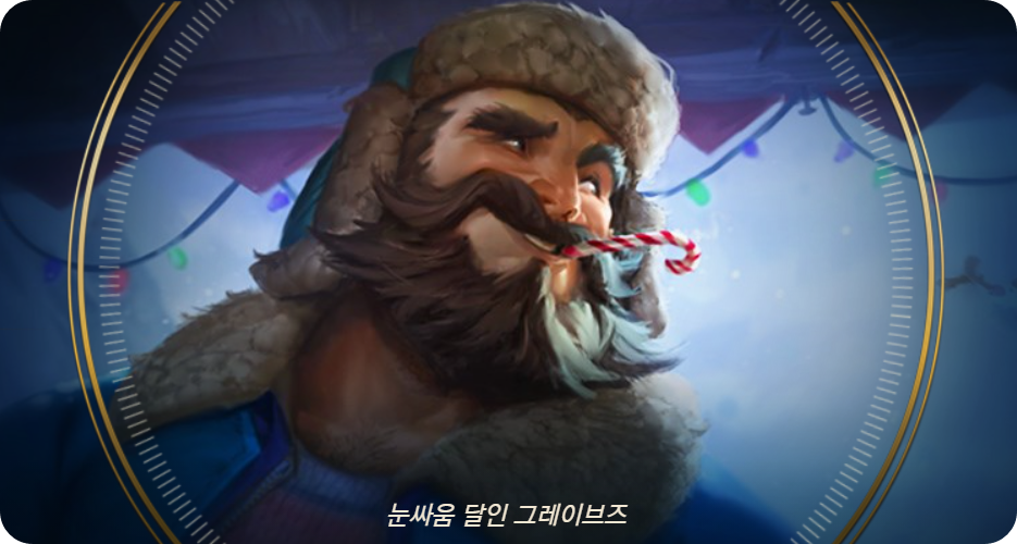 - 스토리: 눈덩이를 발사하는 강력한 총과 뭐든 할 수 있다는 태도를 장착한 그레이브즈는 언제나 탈옥할 때의 대범한 마음가짐으로 눈싸움에 임합니다. 자신의 안전 따위는 안중에도 없이 눈에 보이는 모든 것을 날려버리죠.