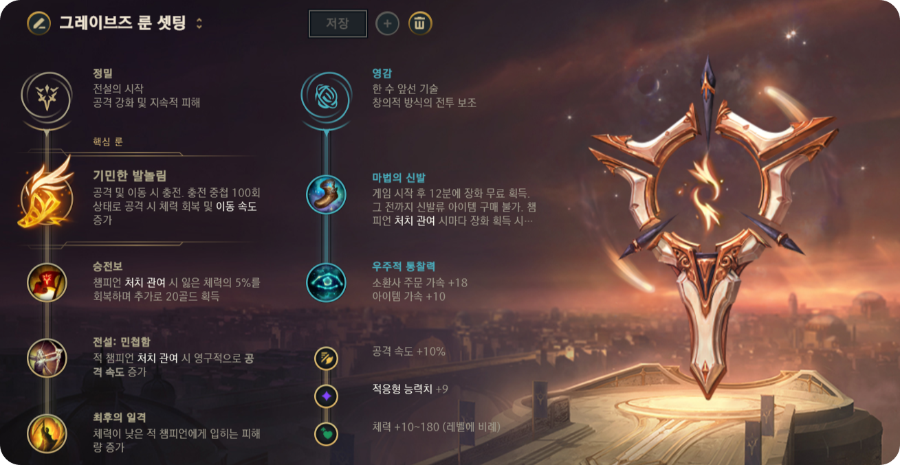 - 정밀 [기민한 발놀림 / 승전보 / 전설: 민첩함 / 최후의 일격]