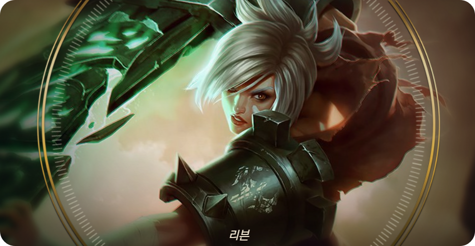 - 스토리: 한때 녹서스 군의 소드마스터였던 리븐은 그녀가 정복하려던 땅에서 추방자로 살아가고 있다. 그녀는 확고한 믿음과 잔혹함에 가까운 능력에 힘입어 상급 군인으로 진급하고 전설의 룬 검과 군대를 포상으로 받았다. 그러나 녹서스에 대한 리븐의 믿음은 아이오니아 전선에서 시험대에 올랐고 결국 산산히 깨지고 말았다. 제국과의 모든 연결고리를 끊어버린 그녀는 산산이 조각난 세상 속 몸을 맡길 곳을 찾아 방랑하고 있다. 녹서스 제국이 재건되었다는 무성한 소문에도 불구하고...