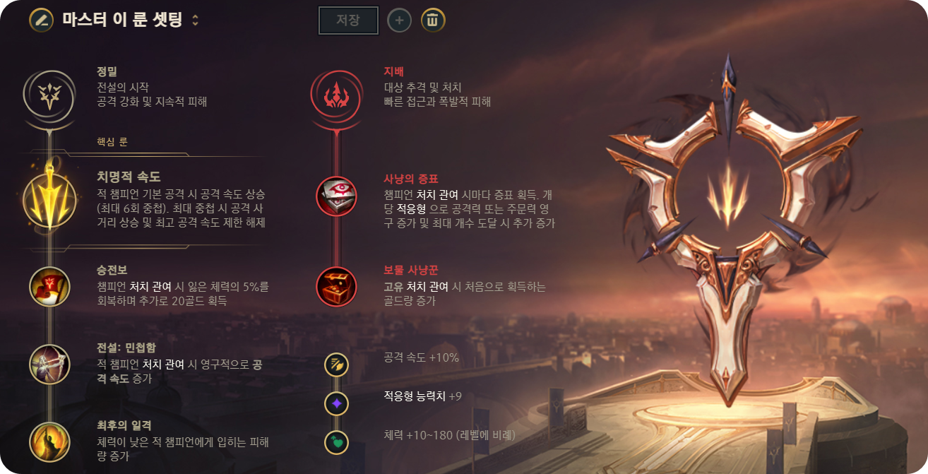 - 정밀 [치명적 속도 / 승전보 / 전설: 민첩함 / 최후의 일격]