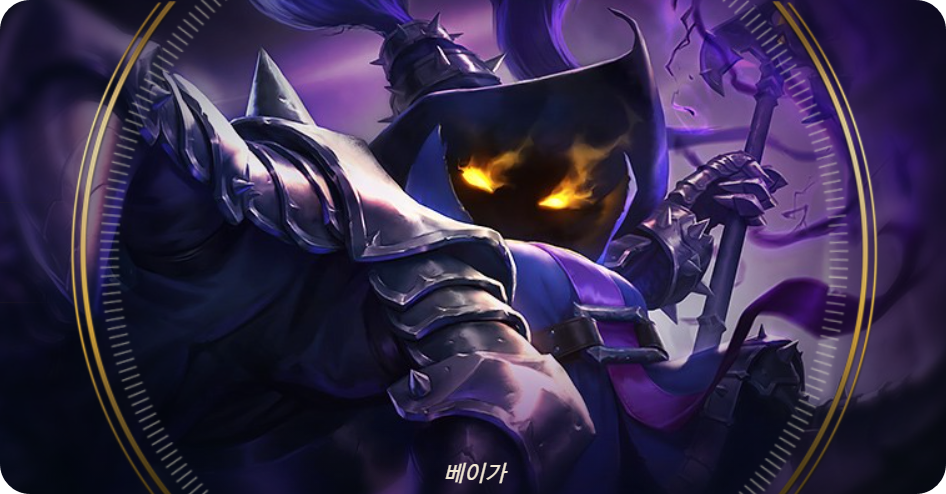 - 스토리: 밴들 시티에 사는 자유로운 영혼. 흑마법의 대가인 베이가는 오직 열정 하나만으로 필멸자는 감히 엄두조차 못 낼 힘을 손에 넣었다. 베이가는 수 천 년 동안 감춰졌던 신비로운 문헌을 탐독하여 요들 마법의 한계를 뛰어넘고 싶어했지만, 다른 요들들은 끝없는 호기심으로 우주의 수수께끼만을 고집스럽게 탐구하는 베이가를 얕잡아 보곤 했다. 사실 베이가는 스스로를 궁극의 악한 존재라고 여기지만, 마음 깊은 곳에서 타고난 도덕성이 숨어 있다. 그래서 베이가의 진짜 동기가 무엇인지 의문을 품는 사람들도 있다.