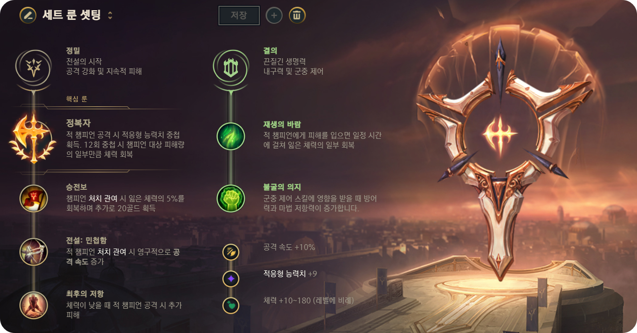 - 정밀 [정복자 / 승전보 / 전설: 민첩함 / 최후의 저항]
