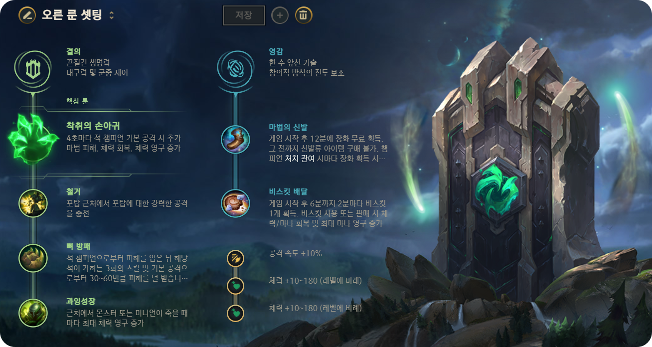 오른 룬 셋팅