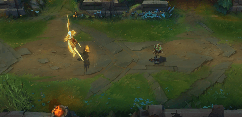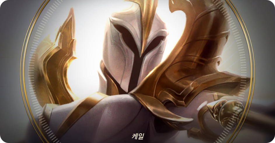 - 스토리: 룬 전쟁이 한창일 때 태어난 케일은 정의의 성위인 어머니의 뜻을 이어받아 신성한 불꽃의 날개를 펴고 정의를 실현하기 위해 싸웠다. 그리고 쌍둥이 동생 모르가나와 함께 데마시아의 수호자로 수년간 추앙받았다. 그러나 인간들의 반복된 실수에 환멸을 느낀 케일은 결국 데마시아를 영원히 떠나고 말았다. 불타는 검을 휘두르며 악을 심판하는 케일의 이야기는 데마시아의 전설이 되었고, 여전히 많은 이들은 케일의 재림을 간절히 바라고 있다.