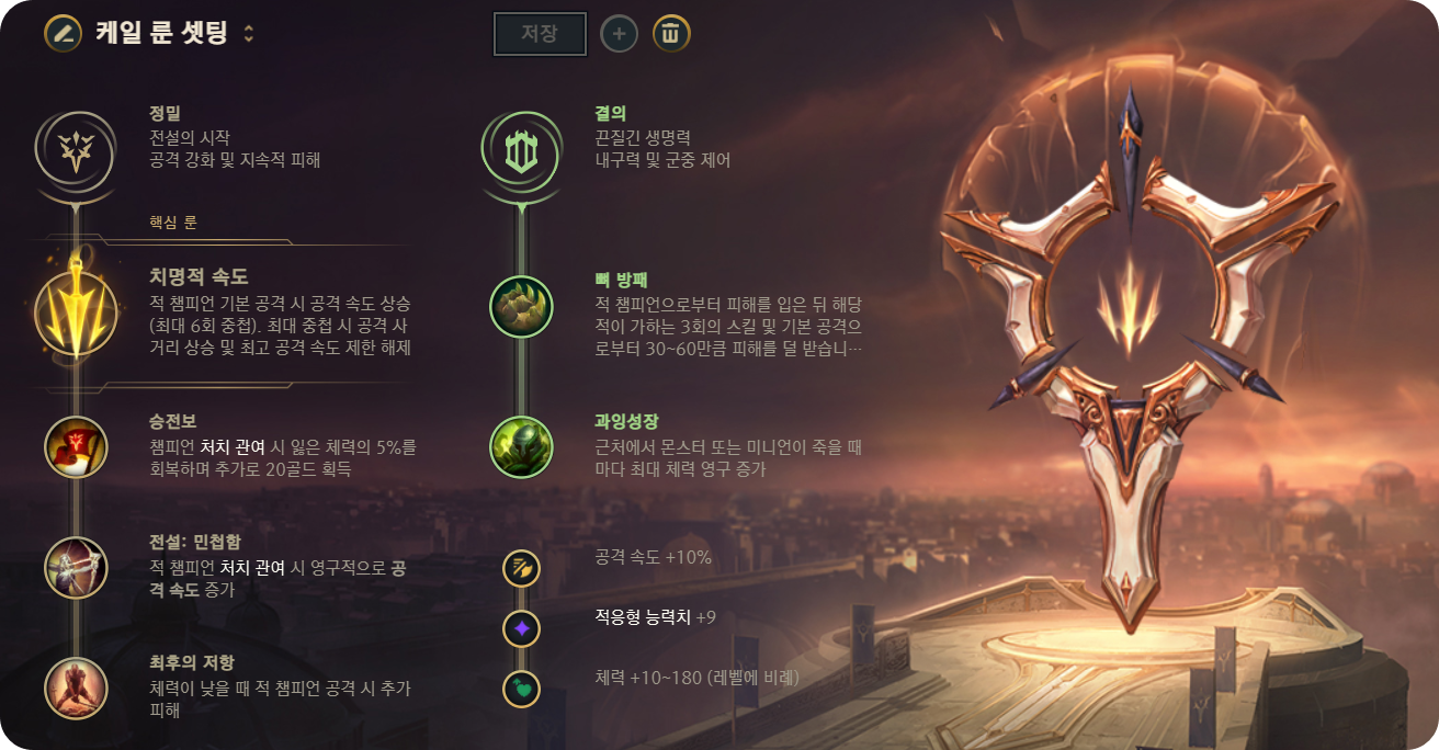 - 정밀 [ 치명적 속도 / 승전보 / 전설: 민첩함 / 최후의 저항 ]