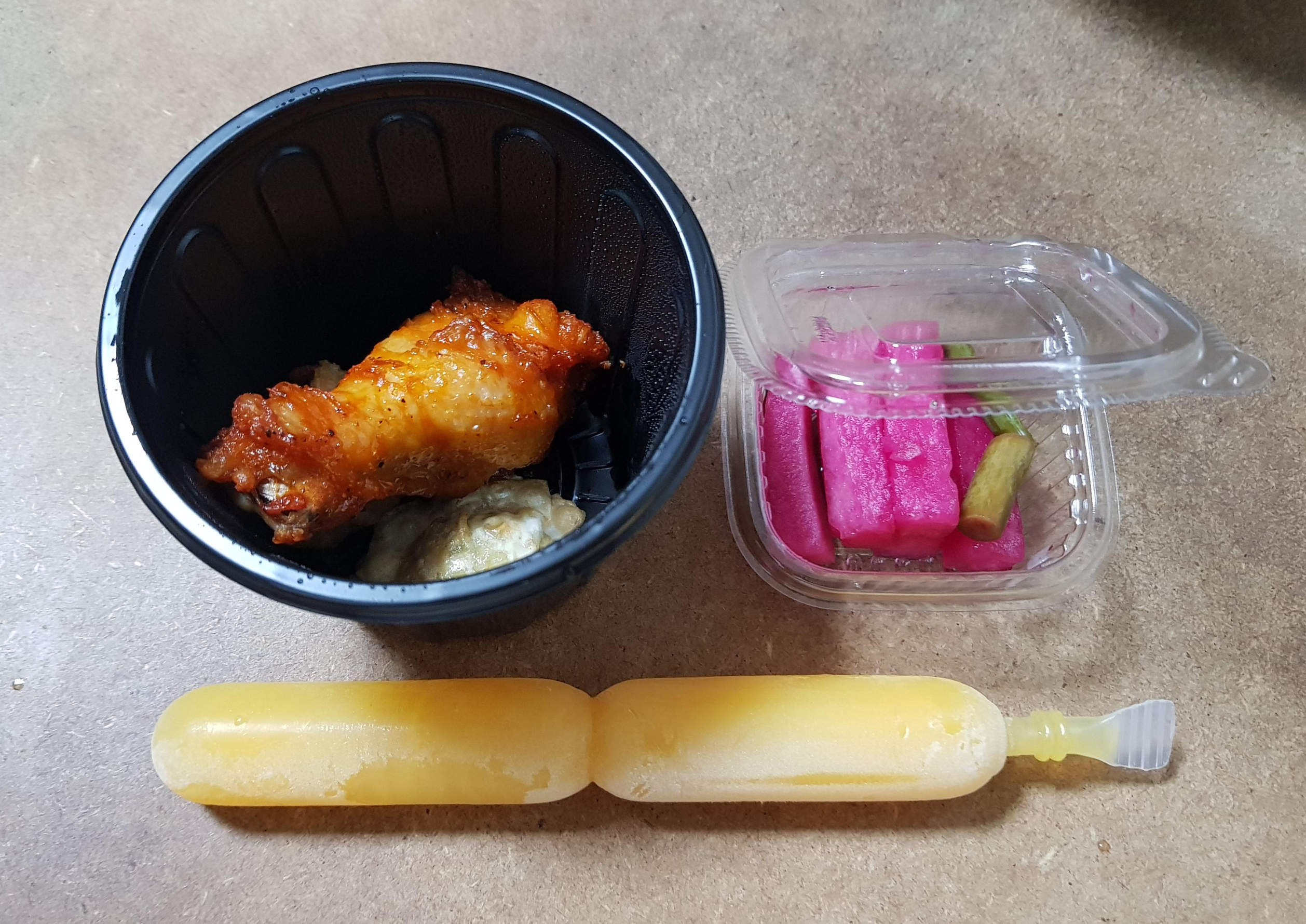 # 구성: 토마토, 아이스크림, 튀긴 만두, 치킨봉, 무
