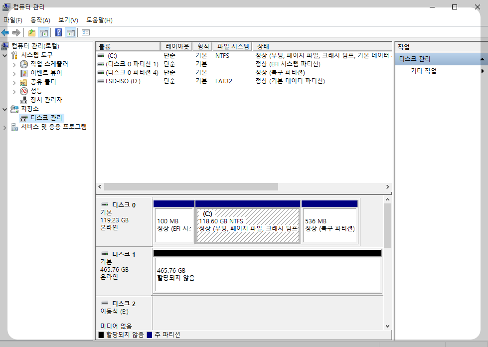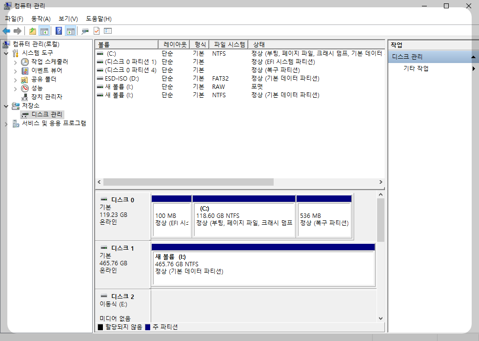 2. 저장소에 있는 " 디스크 관리 " 클릭.