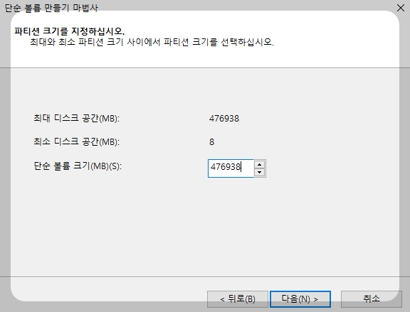 3. 할당되지 않은 500GB 하드디스크 선택 후