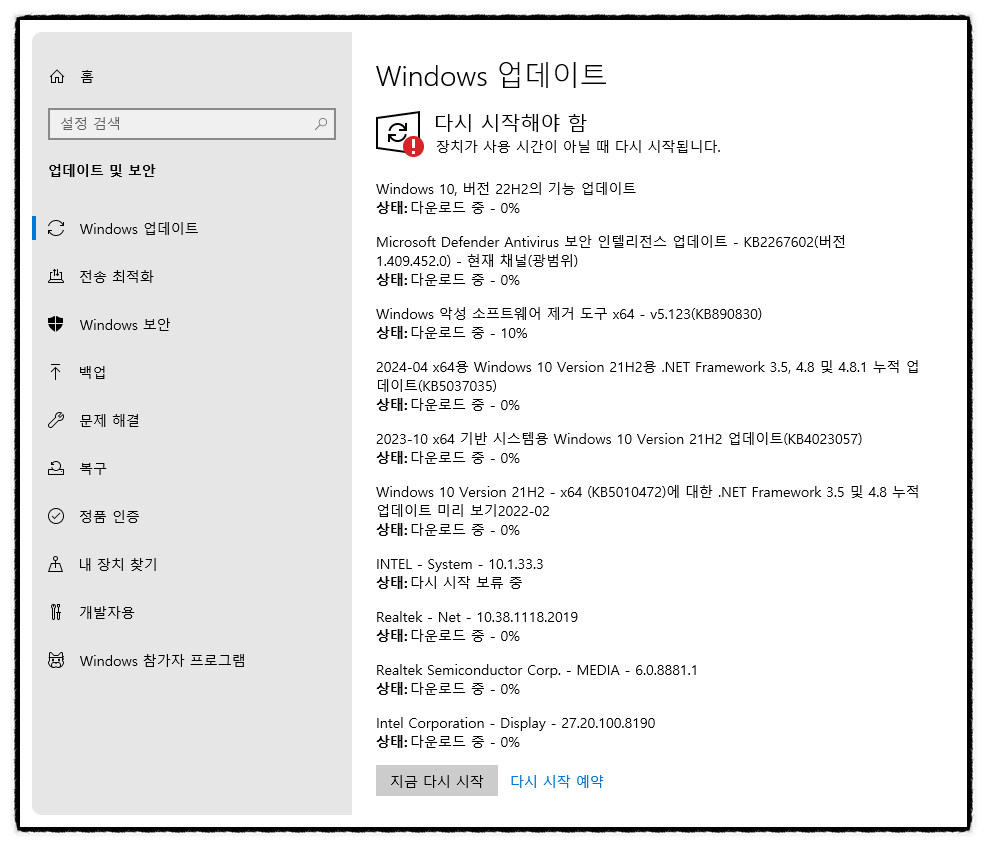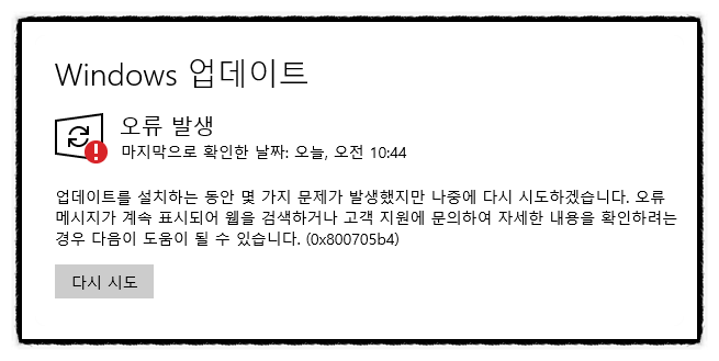 윈도우 10 업데이트 중 발생한 오류로 인해...