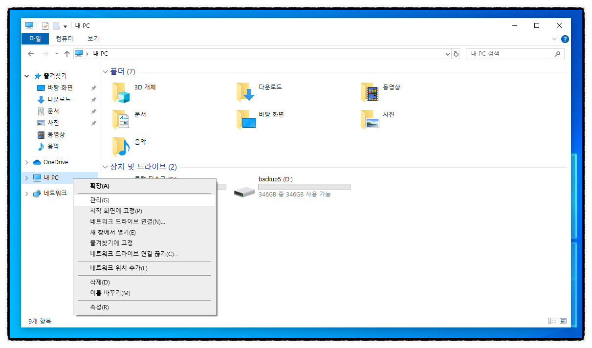내 PC 마우스 오른쪽 클릭 후 " 관리 " 클릭