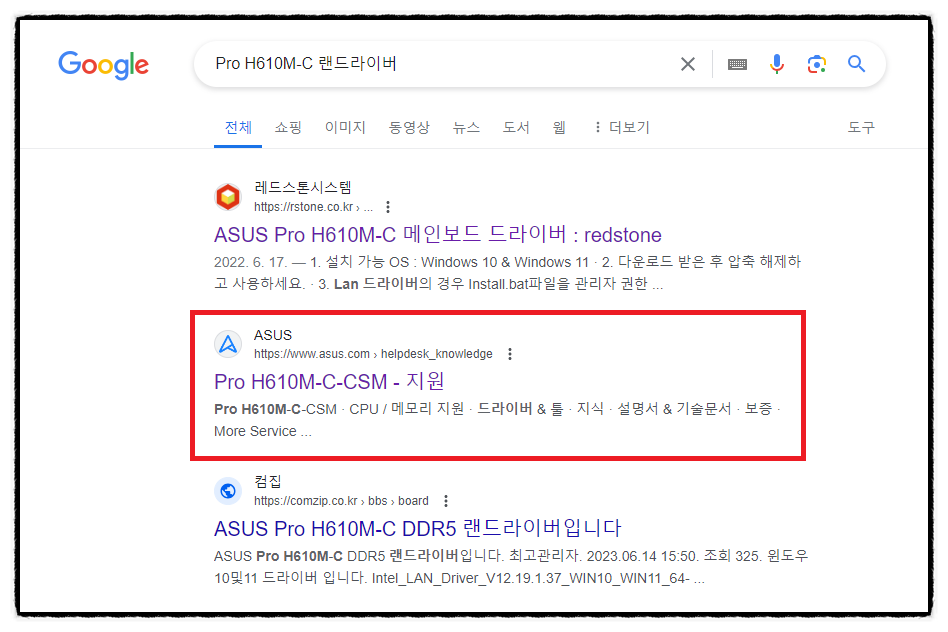 메인보드 기종이 먼지만 알면 랜드라이버를 다운 받아