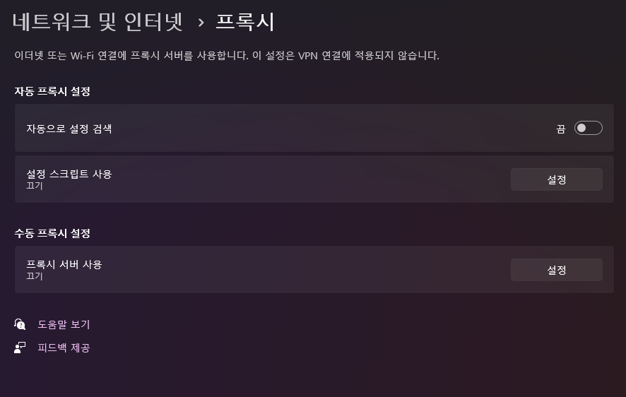 그럴땐, " 프록시 " 설정이 켜져 있나...