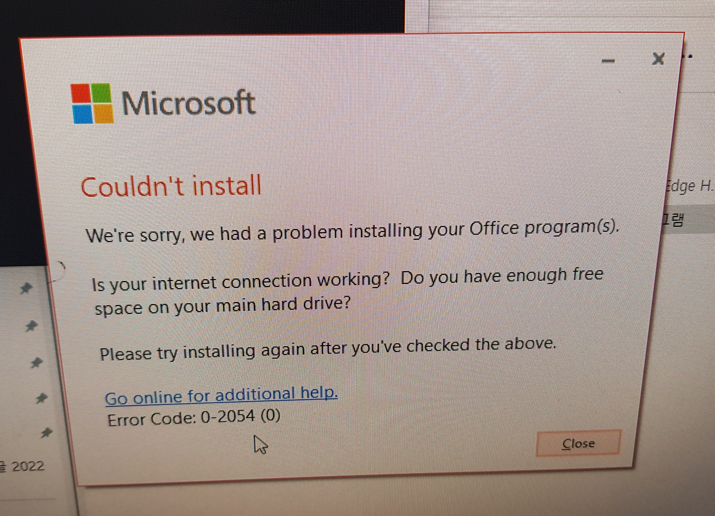 Microsoft 오피스 설치 오류 Couldn't install