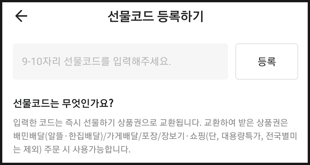 [[[ 선물받은 배민상품권 등록 완료! ]]]