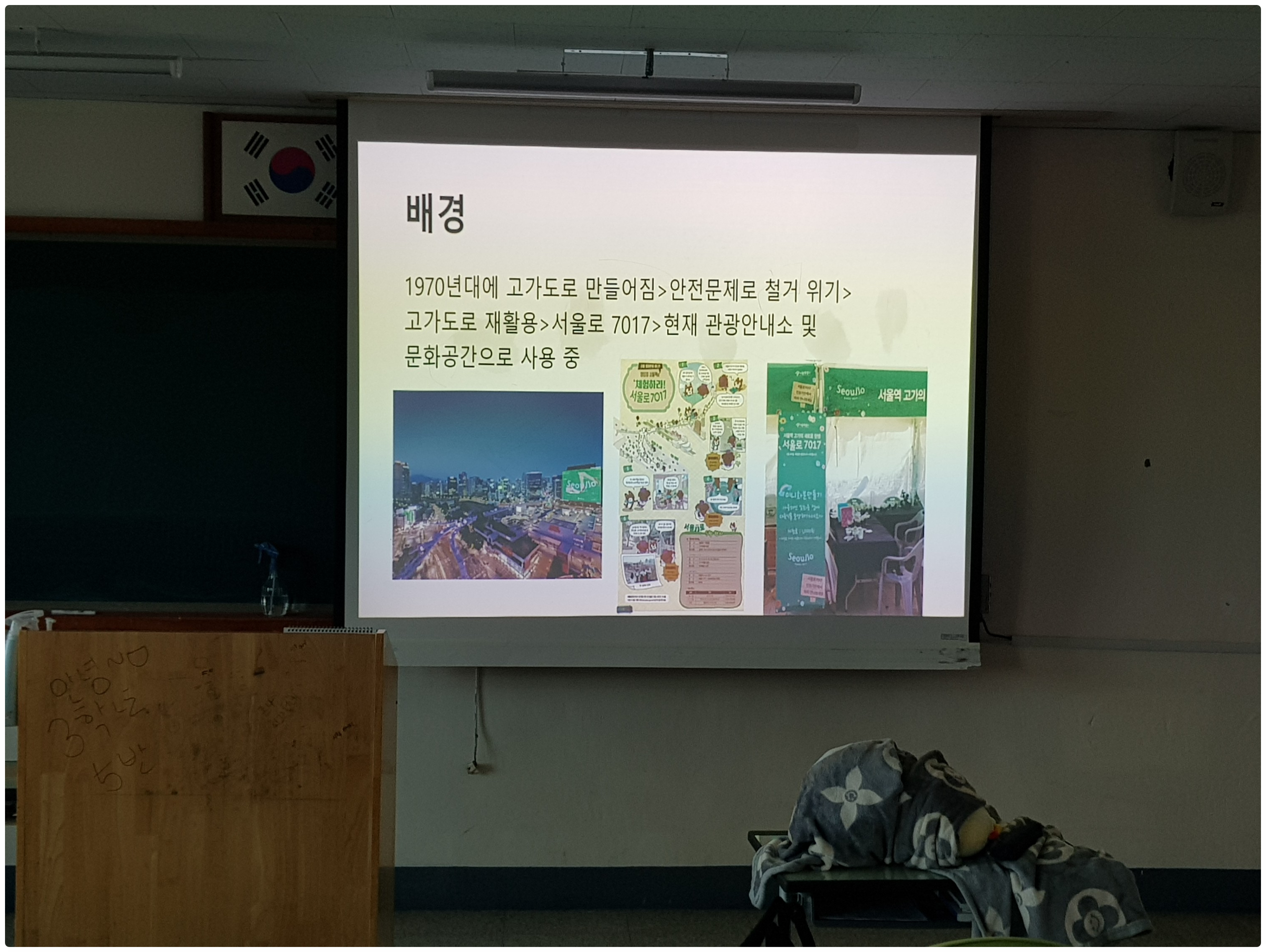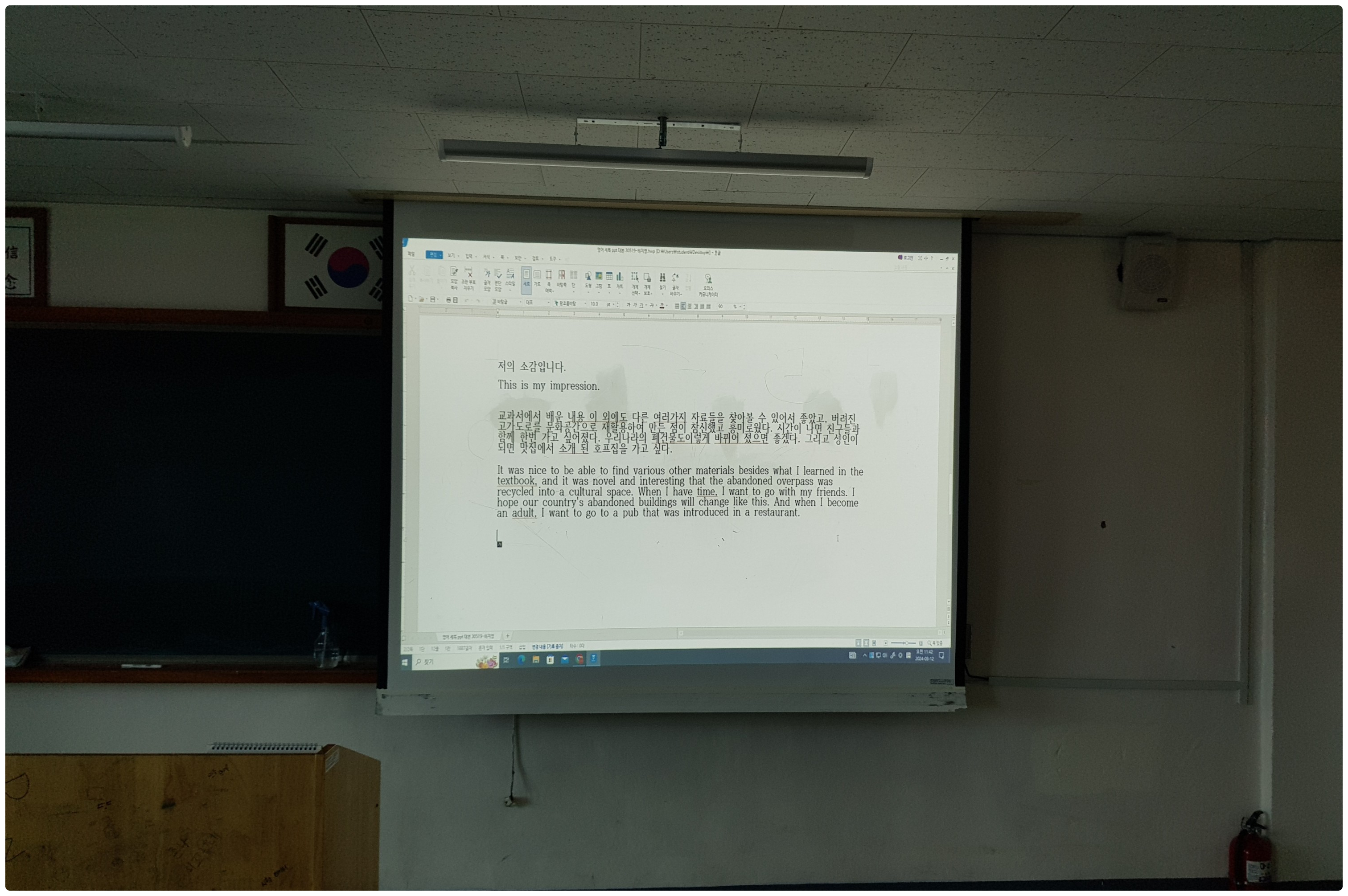 # 빔프로젝터를 천장에 달아야 한다. ( 화면전환 필수 )