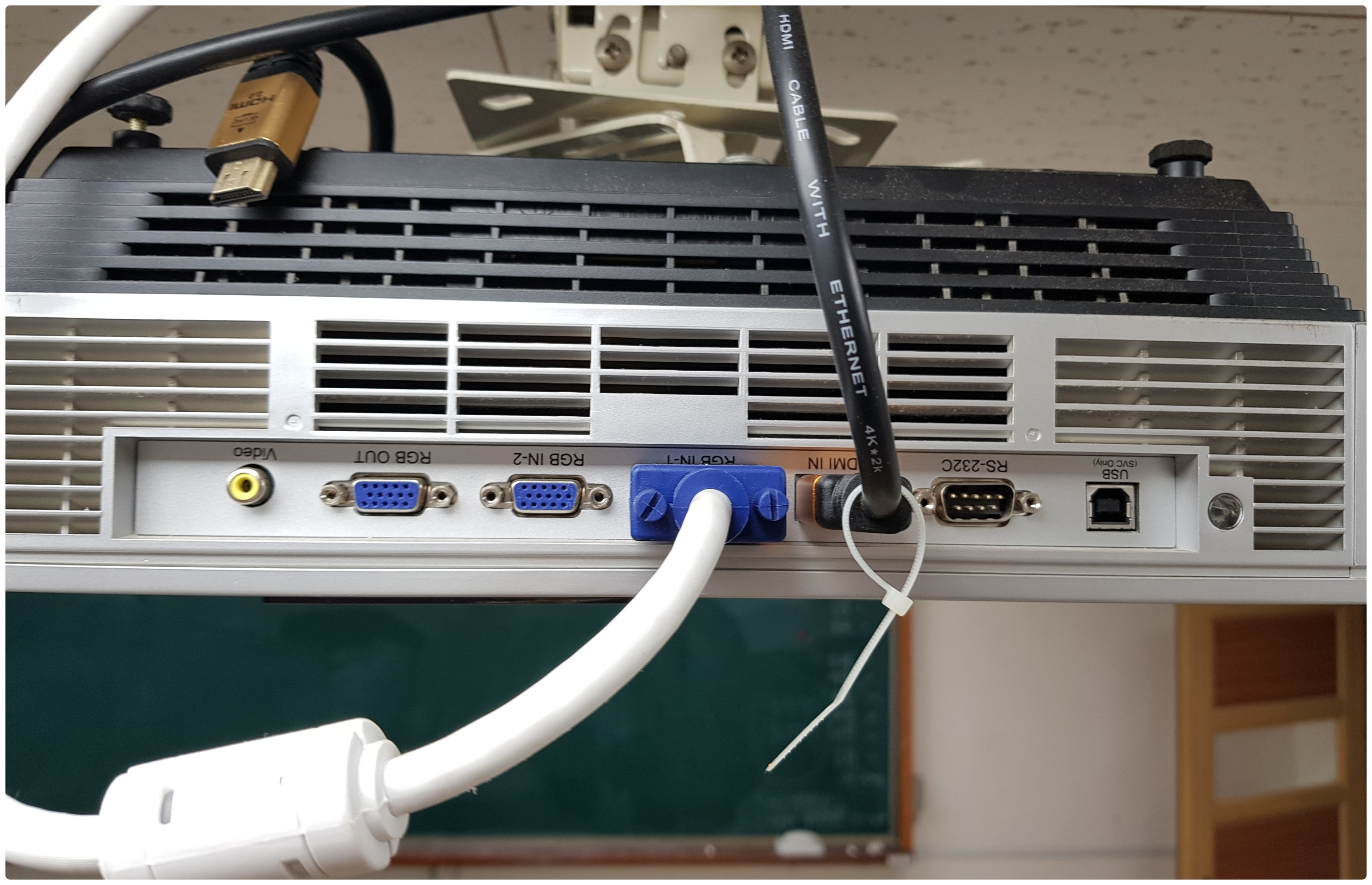빔프로젝터를 보면 [ HDMI IN ] [ RGB IN - 1 ]