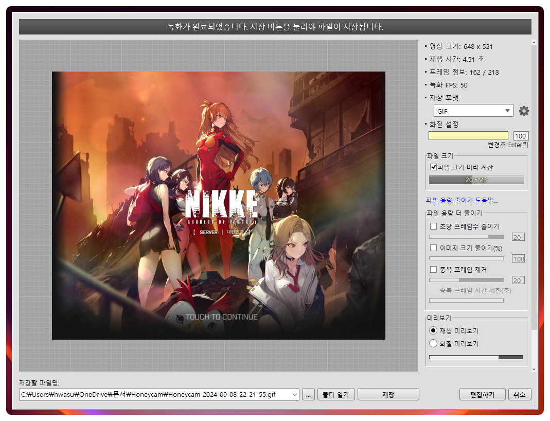 끊을 수 있어서 움짤 만들기가 쉽습니다.