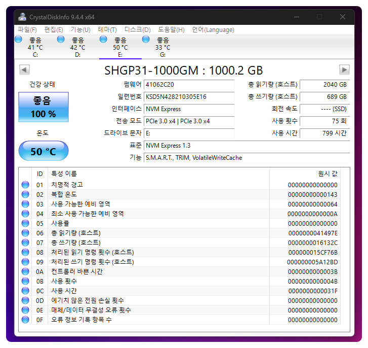 + 프로그램명 : CrystalDiskInfo +