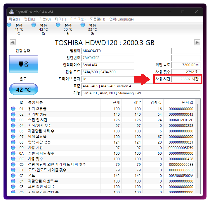 이게 하나 나오는 순간 하드디스크는 시한부입니다...