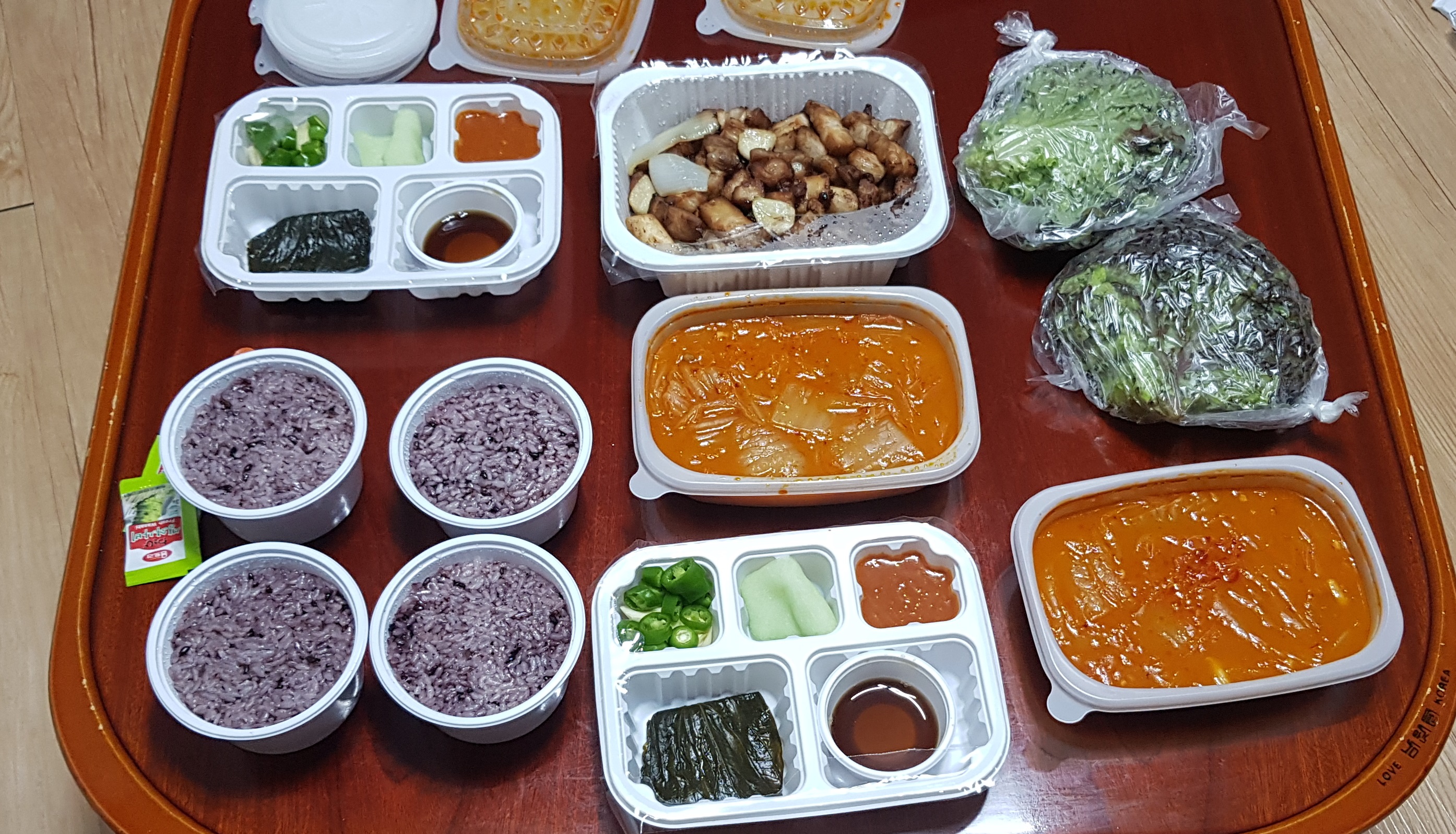 4. 꽉 꽉 눌러담은 흑미밥과 상추 뭉텅이!