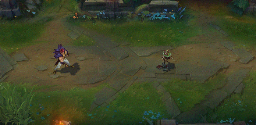 Q > 발걸음 분쇄기 > E > 평타x2 > W > R > 평타x2