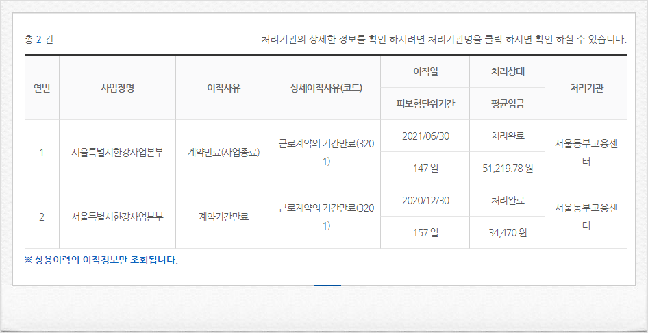 이직확인서가 정상적으로 처리 되었다면