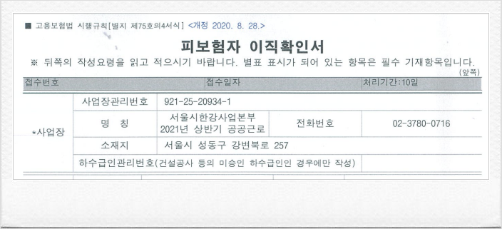 이직확인서가 아직 안 왔다고 하는거에요.