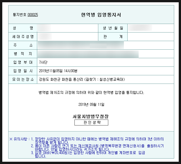 일단 병무청에 들어가면 신원확인을 위해