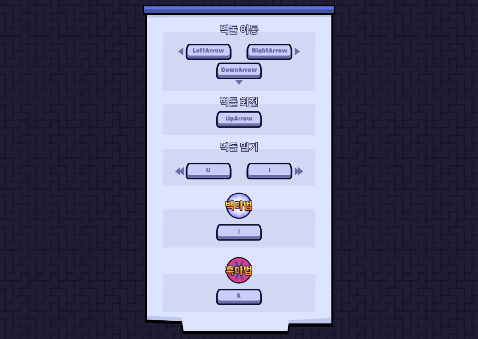 벽돌 밀기, 백마법, 흑마법이 추가 되어 있습니다!